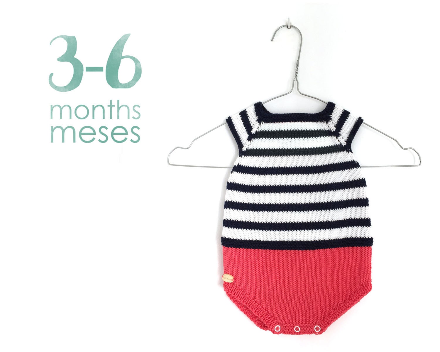 Size 3 6 Months Sailor Baby Romper Pdf Knitting Pattern Etsy Uk